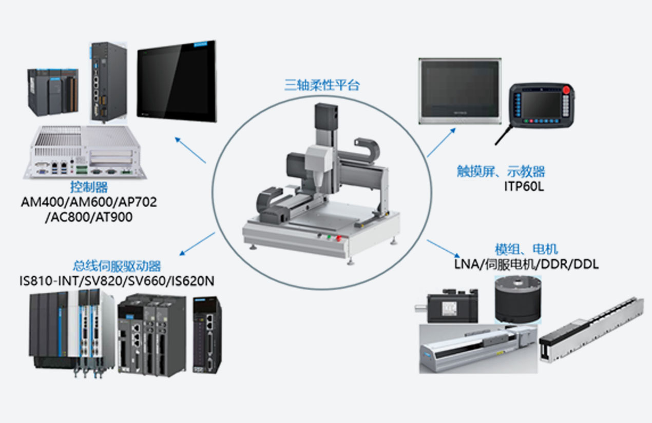 提供控制+驅(qū)動+機械模組+檢測光機電一體化整套方案,集成點涂膠、等離子清洗、鎖附、噴墨、焊接、碼垛、移栽、上下料等工藝,可通過示教、導圖的方式進行軌跡的和動作的編輯,適用于汽車電子非標自動化產(chǎn)線設備應用。針對龍門同步、CNC、視覺補償、與上位機數(shù)據(jù)交互封裝了功能塊,實現(xiàn)簡易編程。
