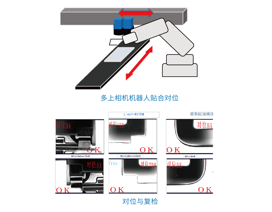 3C生產(chǎn)中執(zhí)行機(jī)構(gòu)種類(lèi)多,非標(biāo)對(duì)位類(lèi)型多,對(duì)位誤差難以解耦。我司的Kinovision視覺(jué)應(yīng)用平臺(tái)支持多種通訊協(xié)議,支持標(biāo)準(zhǔn)或非標(biāo)執(zhí)行機(jī)構(gòu),包括機(jī)器人、UVW、XYθ模組等,具備腳本編程,具有極大的靈活性于高度的適應(yīng)性。其特有的誤差驗(yàn)證工具和誤差排除標(biāo)準(zhǔn)流程,滿(mǎn)足單平移對(duì)位、單相機(jī)雙工位對(duì)位等非標(biāo)對(duì)位需求,高精度地滿(mǎn)足客戶(hù)誤差解耦的需求。